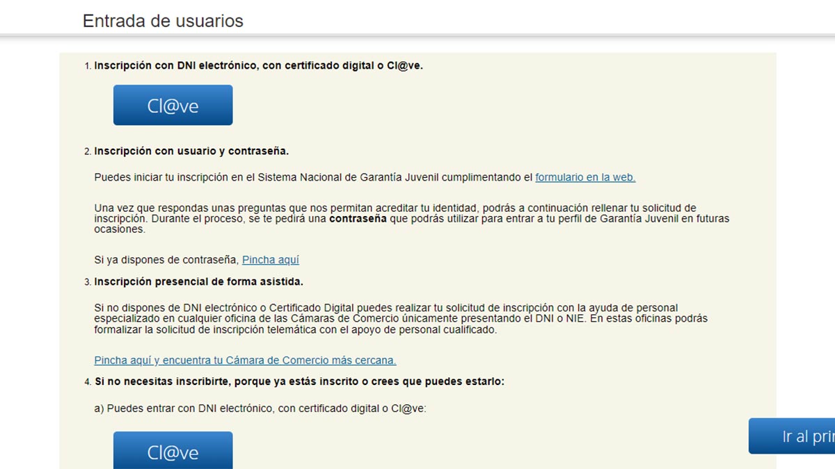 Si quieres, puedes iniciar la solicitud para inscribirte en el sistema de Garantía Juvenil.