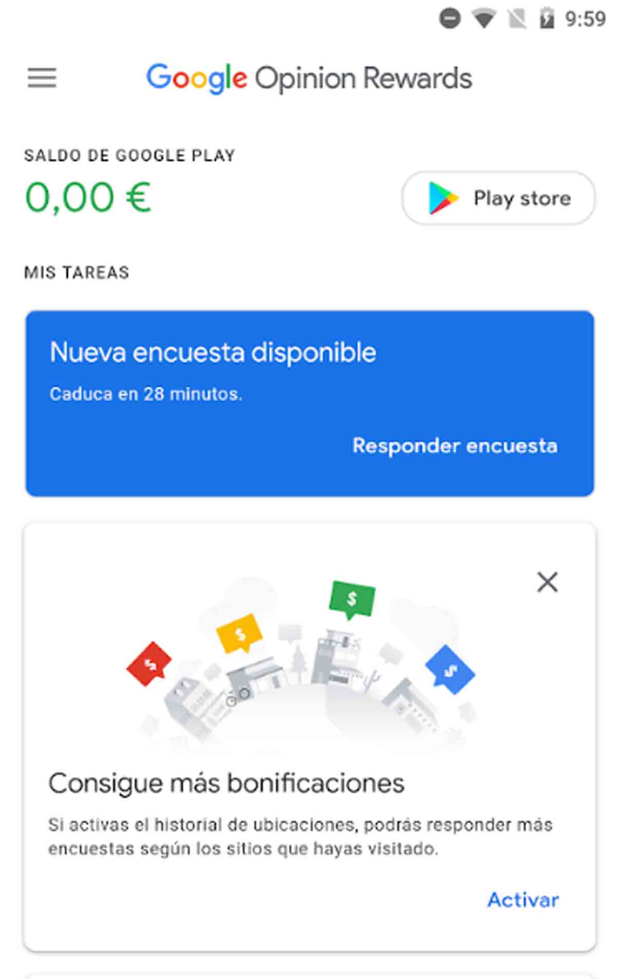 Sí, es posible. Con la aplicación Google Opinion Rewards puedes conseguir un dinerillo extra a cambio de responder a preguntas personalizadas que te hace la app. Esta compensación económica se acumula directamente en tu cuenta para gastar juegos y apps de pago en Google Play.