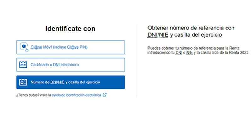 Cuando estés dentro, deberás elegir el método de identificación por ‘Número del DNI/NIE y casilla del ejercicio’.