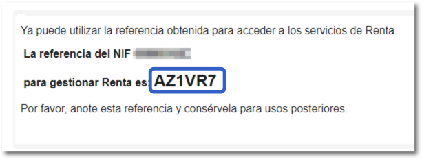 Una vez introducidos los datos solicitados, hay que pulsar el botón ‘Obtener referencia’. De forma automática aparece una combinación de seis caracteres en la pantalla. Una vez obtenida la referencia, el contribuyente puede iniciar el proceso de descarga y acceder al borrador.