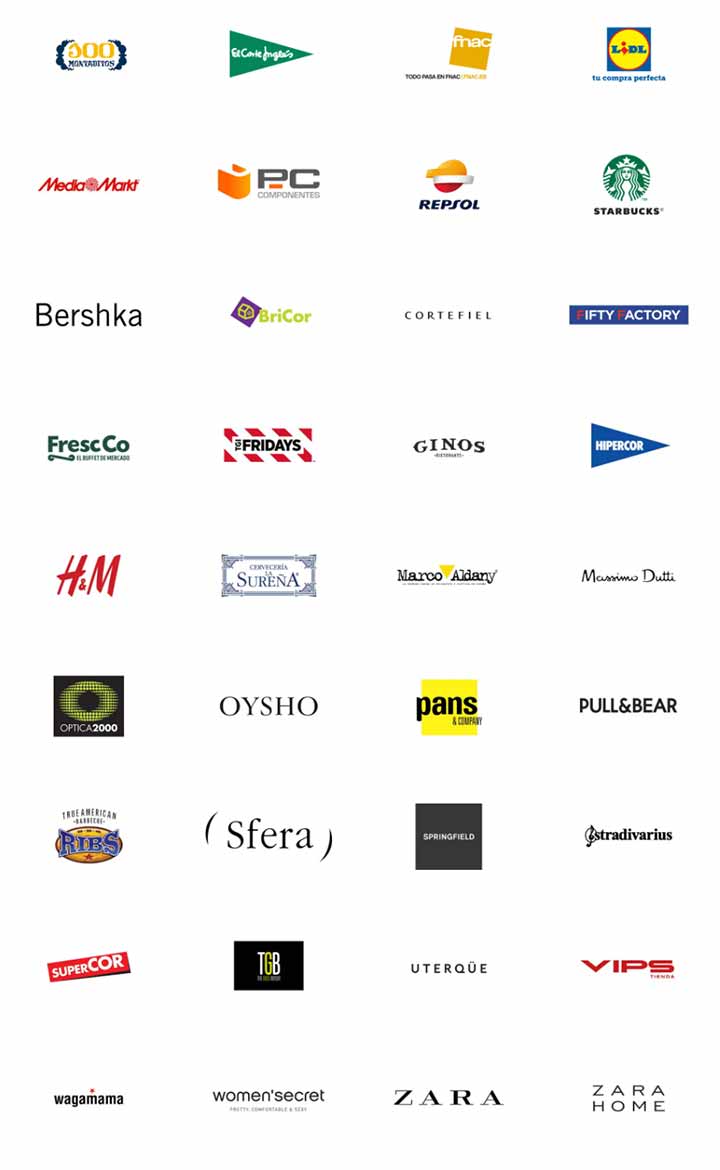 Las principales son: Stradivarius, Vips, Oysho, Pull&Bear, H&M, Bricor, Media Markt o Lidl tal y como se muestran en esta imagen: