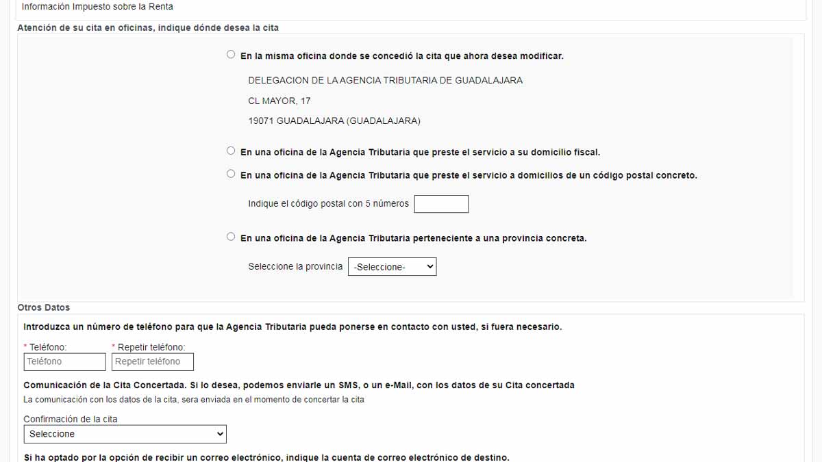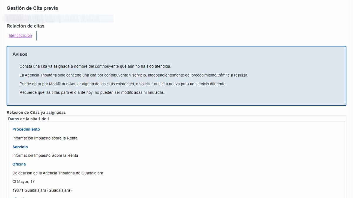 Cambiar o anular una cita en Hacienda