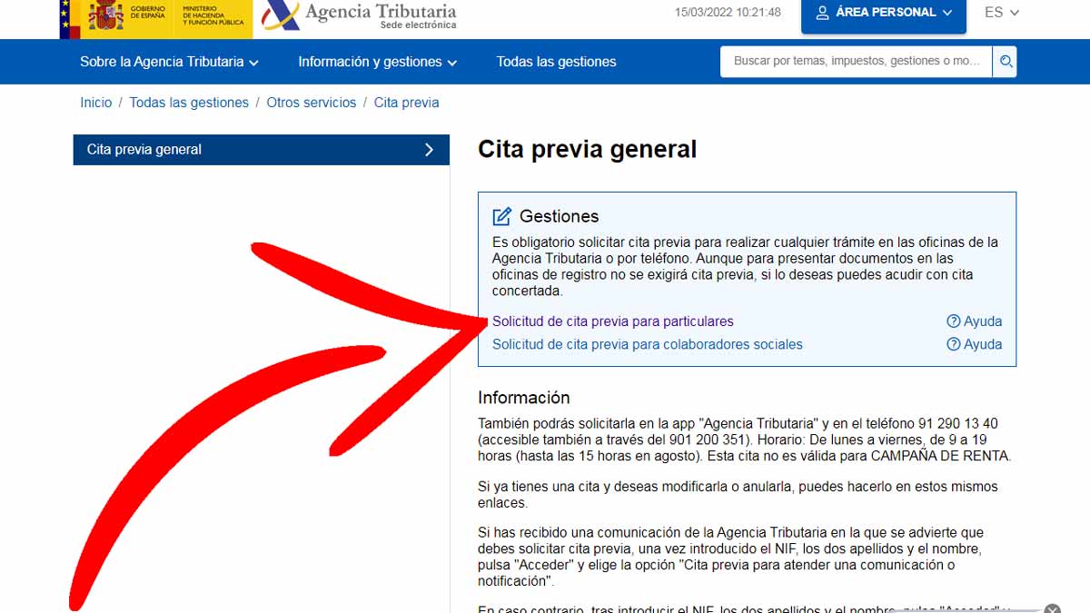 - Pedir una cita previa para particulares