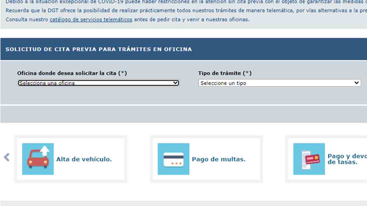 Para poder realizar los diferentes trámites con la Dirección General de Tráfico de forma presencial, hay que solicitar cita previa a través de su página web.