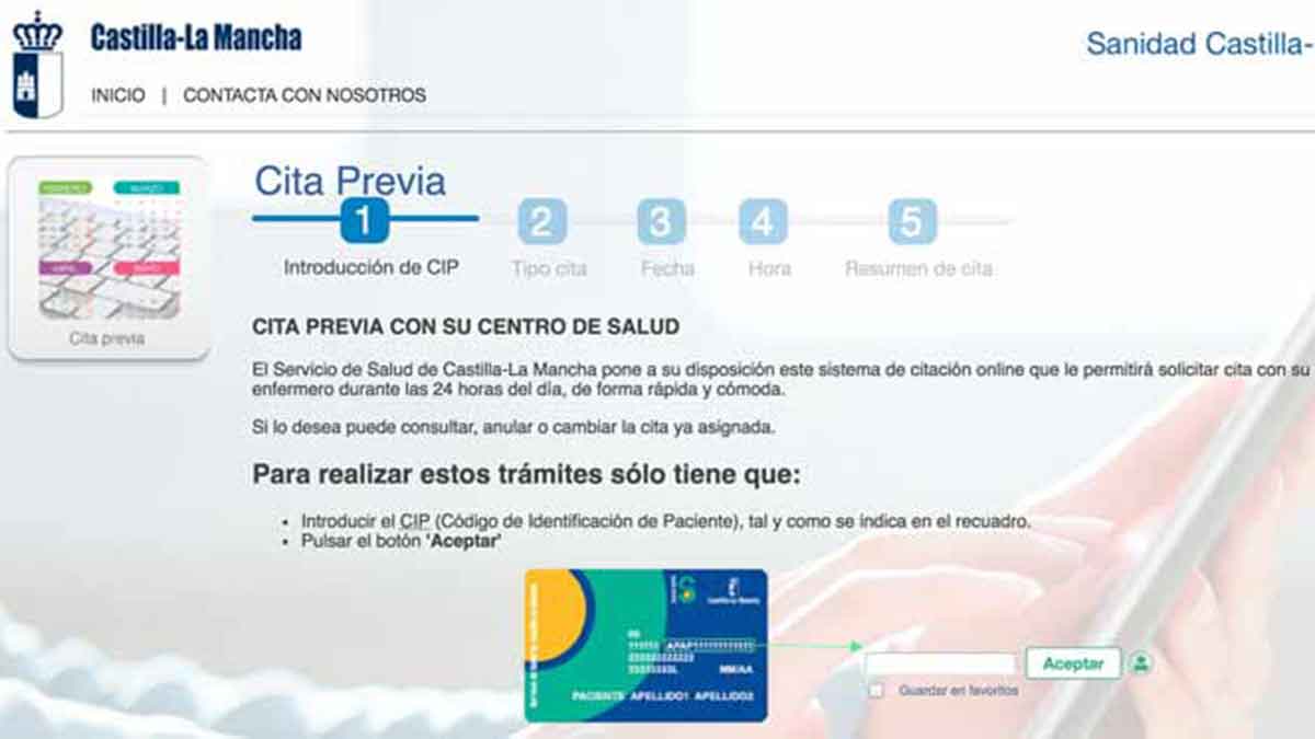 – Por Internet. Tendrás que acceder a la página de citas previas del SESCAM y a través de esta podrás concertar una cita para consultas de medicina de familia, pediatría o enfermería. Para ello, bastará con introducir el código de identificación del paciente presente en tu tarjeta sanitaria y pinchar en “Aceptar”. Después solo tendrás que escoger la especialidad que te interese y el día y hora que mejor te venga.