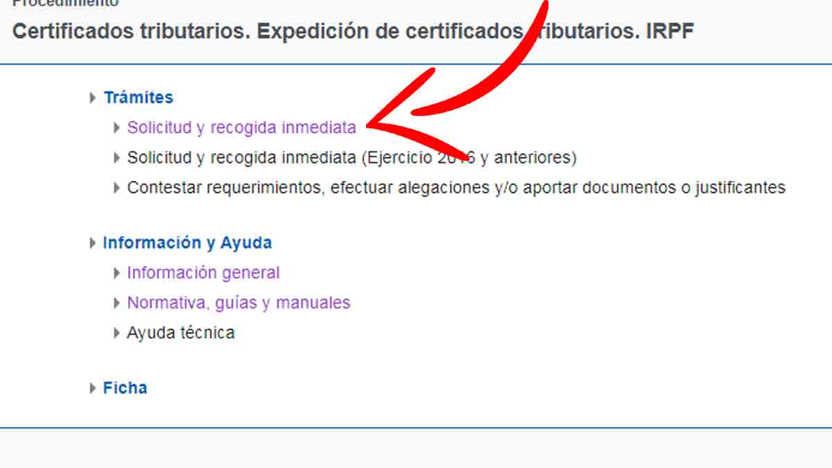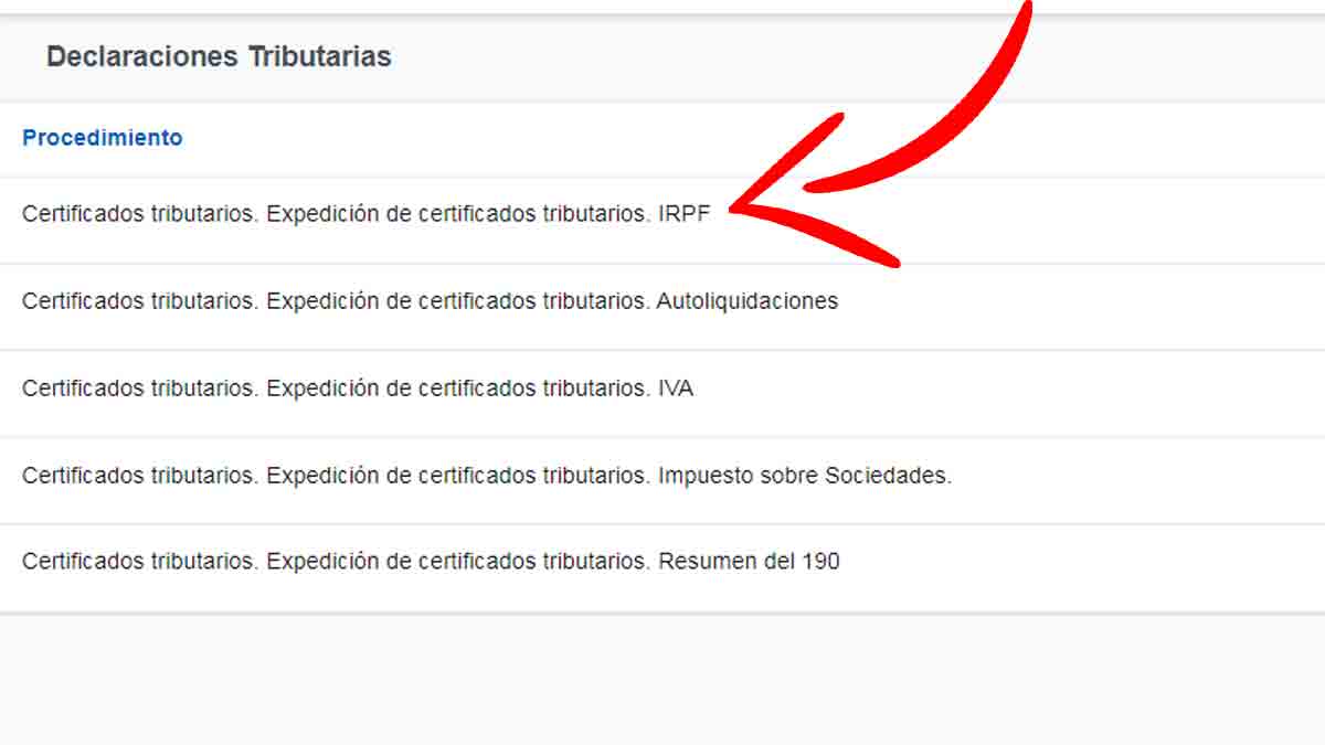Después, selecciona ‘Expedición de certificados tributarios. IRPF’ tal y como se ve en la imagen.