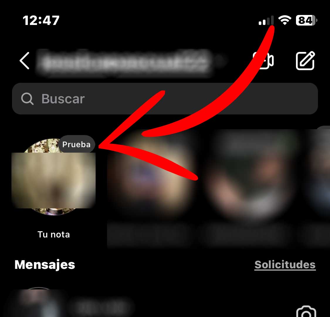Al hacerlo se abre una nueva pestaña donde aparece el listado de mensajes privados que has mantenido con otros perfiles. Y, en la parte superior, una barra horizontal con las fotografías de los perfiles de otras cuentas de la sección de amigos. En la parte superior de la fotografía, aparece una especie de bocadillo de cómic donde puedes leer la nota de los distintos perfiles. Si quieres escribir la tuya, solamente hay que pulsar en el botón de + que aparece encima de tu foto de perfil.