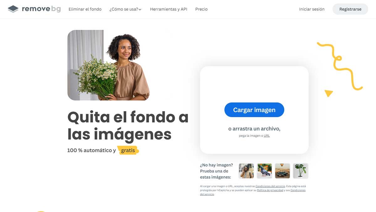 Removebg es una plataforma online y gratuita con la que puedes eliminar el fondo de cualquier imagen en menos de dos minutos y totalmente gratis. El proceso es muy sencillo. Solamente hay que acceder a su página web y, desde el botón que dice ‘Cargar imagen’ o arrastra un archivo, subir la foto que quieres editar.
