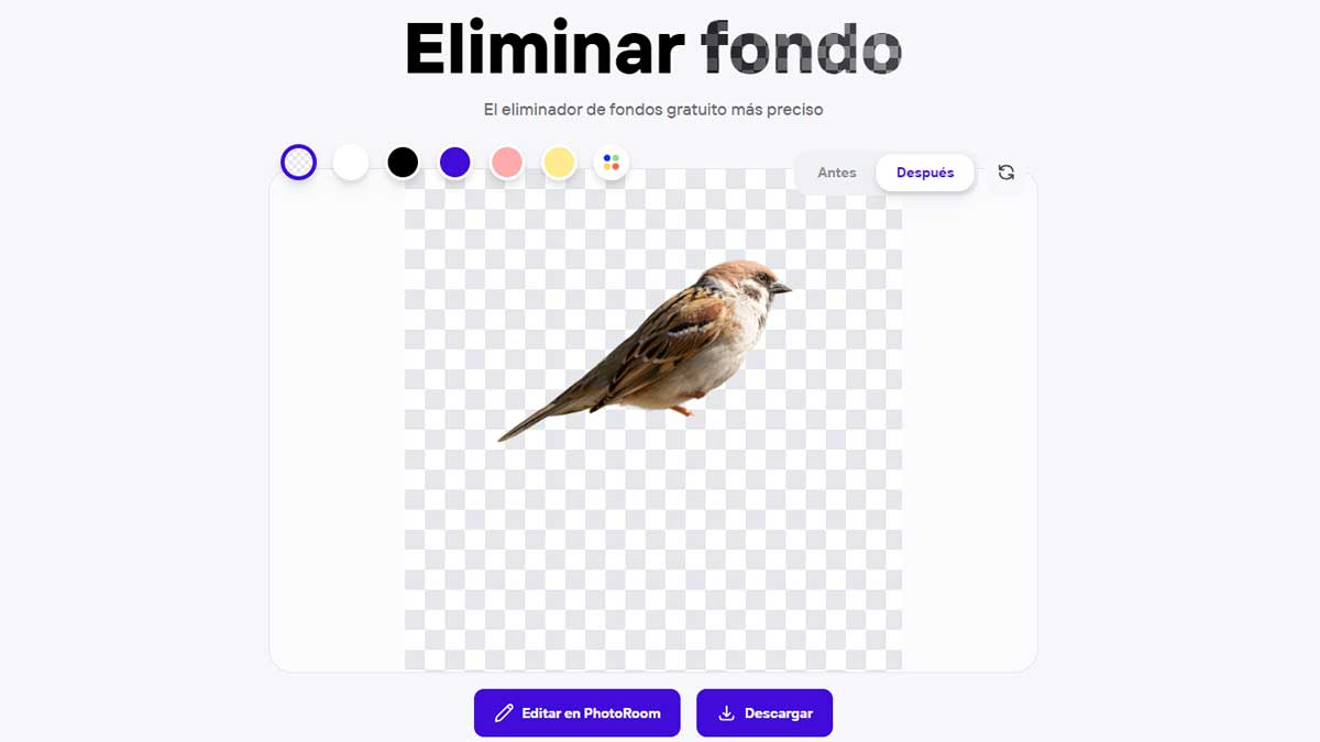 Cuando tengas la imagen lista, solamente hay que pulsar el botón que dice ‘Descargar’ y la tendrás en tu ordenador en cuestión de segundos. Puedes empezar a editar tus imágenes y quitarle el fondo desde la web de Photoroom.