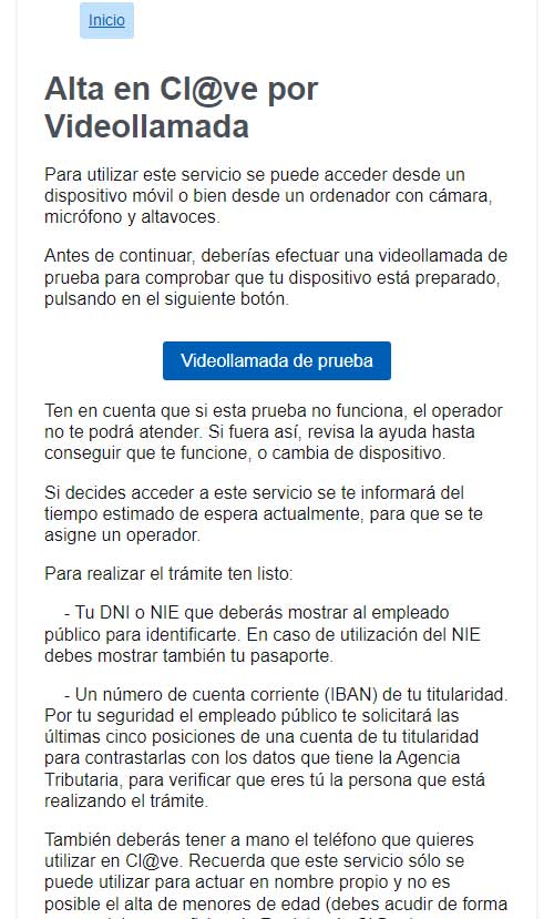 Otra opción para conseguir la Cl@ve es completar el proceso por videollamada, tal y como se detalla en la misma página.