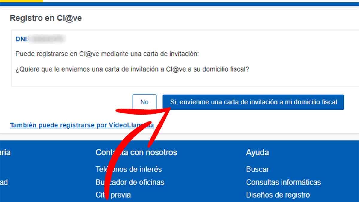 En el caso de querer recibir una carta de invitación en el domicilio fiscal, hay que pulsar en el botón que dice ‘Sí, envíenme una carta de invitación a mi domicilio fiscal’.