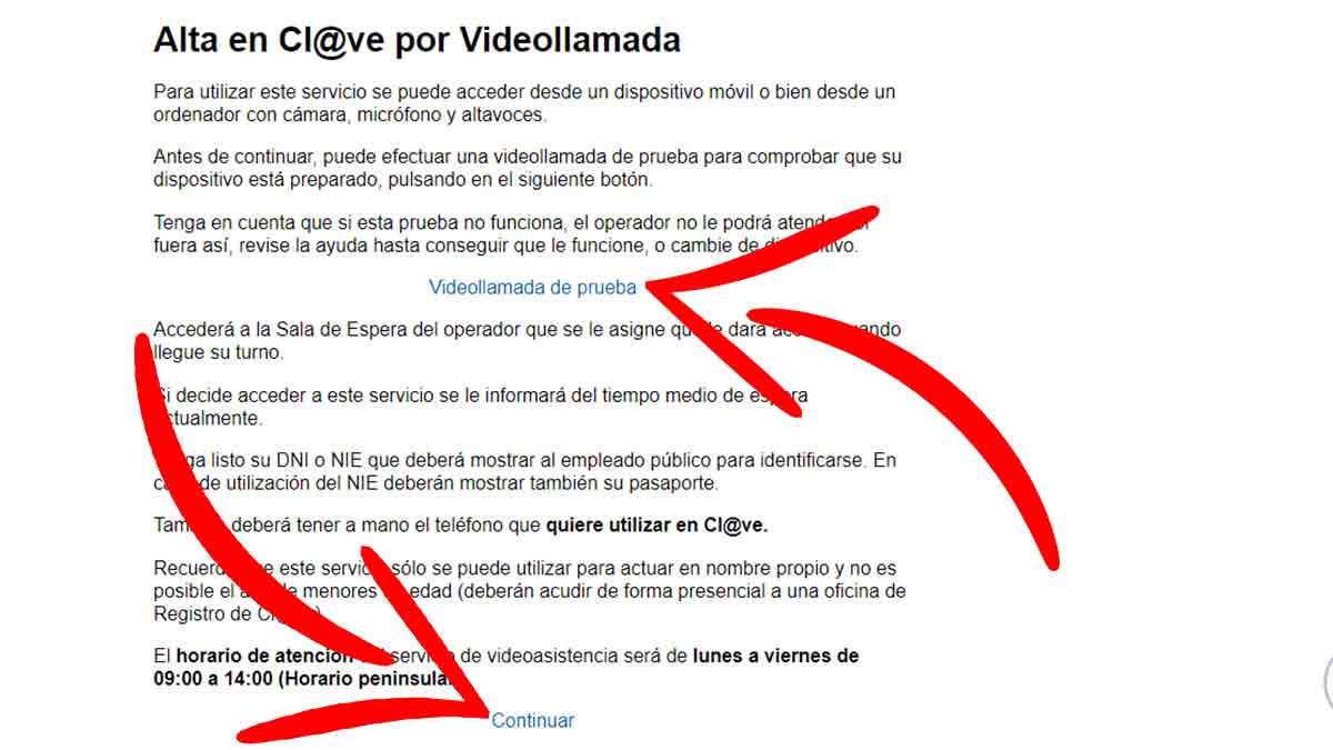 Antes de iniciar la llamada, hay que hacer una de prueba. Tras este paso previo, marcar la opción de ‘Continuar’ y ponerte en contacto con este organismo. El horario de asistencia es de lunes a viernes desde las 09:00 horas de la mañana y hasta las 15:00 horas del mediodía.
