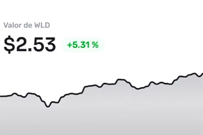 A continuación se mostrará los WLD que tienes disponibles en esa tarjeta virtual y el cambio a dinero real. Ten en cuenta que el valor del WLD, al igual que cualquier otra criptomoneda, va variando en función del mercado. En la parte inferior de la billetera podrás consultar una gráfica en la que se muestra el valor del WLD al cambio de divisa. Podrás ver la evolución por días, semanas, meses o años.