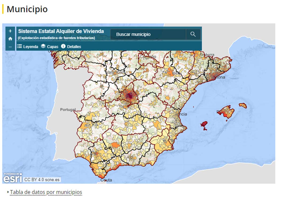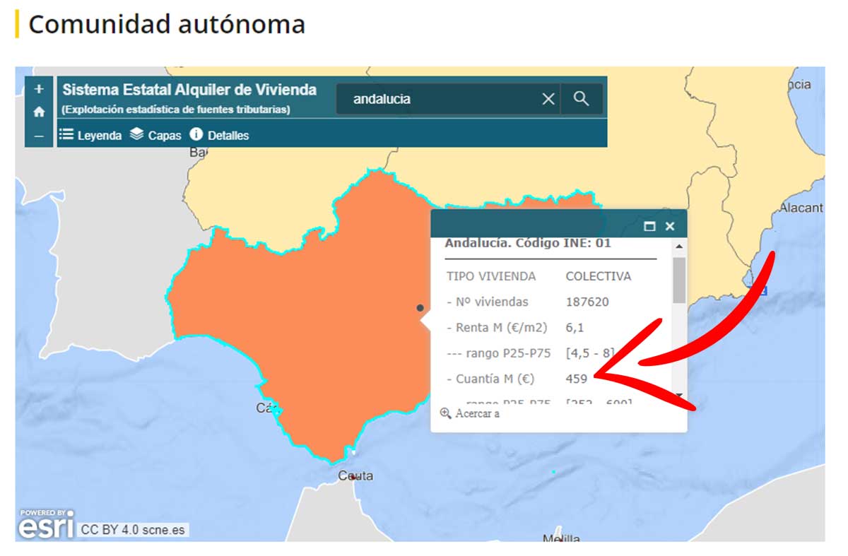 Por comunidades autónomas, por ejemplo, si quieres saber cuánto se paga de alquiler en Andalucía, hay que introducir el nombre de la autonomía en el buscador.