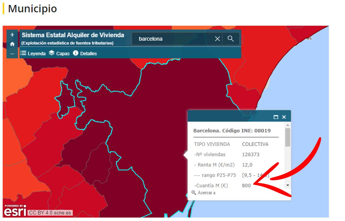 Al hacerlo, aparece la información específica que explica que el alquiler medio es de 459 euros en esta comunidad.
