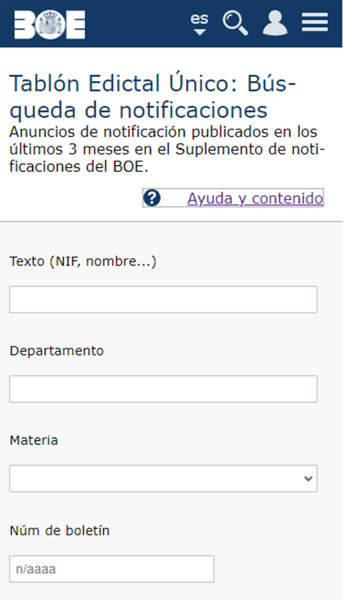 Para hacer una consulta, lo primero que hay que hacer es acceder a la sección específica de Tablón Edictal único del Boletín Oficial del Estado.