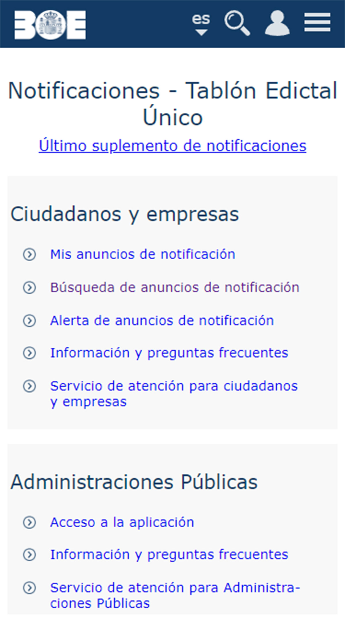 - Por otro, en el Tablón Edictal Único del BOE o TEU.