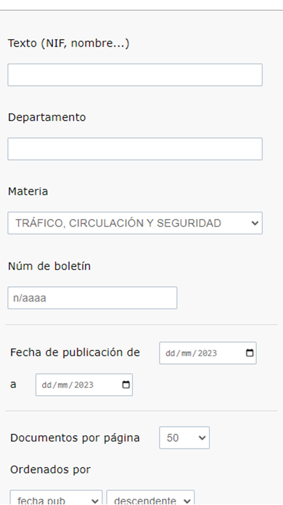 En el apartado ‘Texto’ hay que introducir la matrícula del coche, el DNI, el nombre completo y apellidos. Si decides introducir tu nombre y apellidos debes hacerlo entre comillas. La búsqueda tienes que hacerla poniendo el nombre al final y al principio porque la multa puede haber sido publicada de las dos formas.