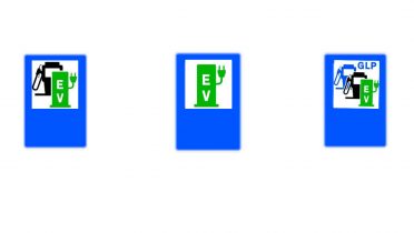2. Estación de recarga eléctrica. Por el contrario, esta señal solo indica la presencia de la estación de recarga de vehículos eléctricos, pero no de una gasolinera.