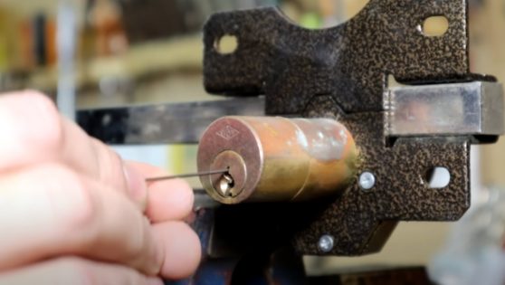Una vez lo tengas, hay que estirar el clip o alambre y dejarlo en forma de palo. A continuación, meter uno de los extremos por la parte superior de la ranura de la cerradura. Esto es importante, dado que la mejor forma para sacar el trozo de llave es hacerlo al enganchar el trozo de alambre con los dientes de la llave, motivo por el que hay que sacarlo desde la parte superior.
