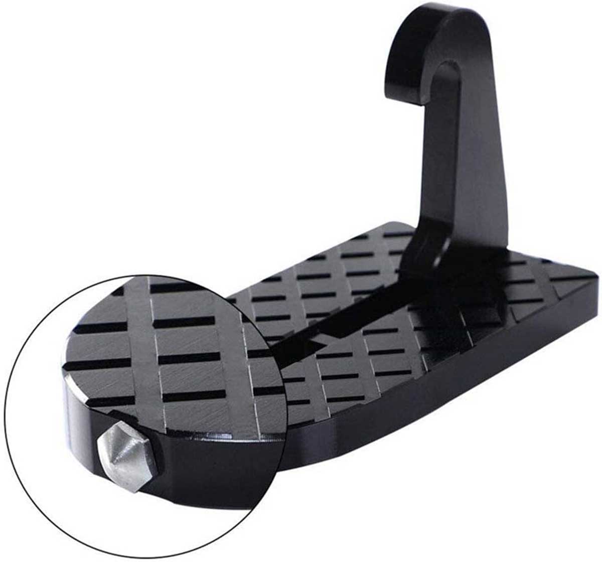 Este pedal plegable Yontree para la puerta del coche está compuesto por una aleación de aluminio capaz de resistir hasta 250 kilogramos de peso. Además, cuenta con una parte de metal afilada que cumple con la función de martillo de seguridad. Puede romper cualquier cristal del coche en caso de emergencia.