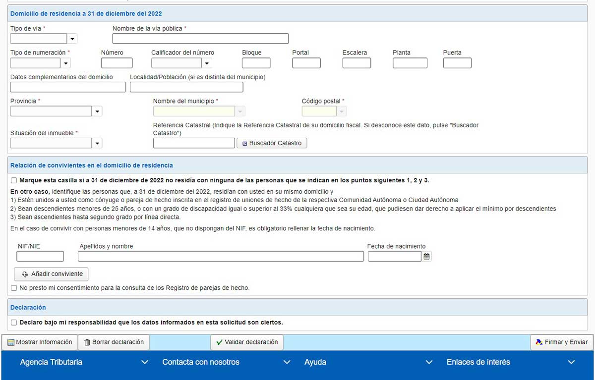 En la parte final del formulario, tal y como aparece en la siguiente imagen, aparecen las pestañas ‘Validar declaración’ y, en la parte inferior derecha, ‘Firmar y Enviar’. Hecho esto, la solicitud queda presentada y solamente hay que esperar a recibir la notificación de Hacienda sobre si se ha aceptado o no.