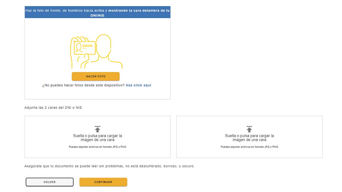 - Una imagen de su rostro del solicitante junto en la que debe aparecer una imagen del DNI.