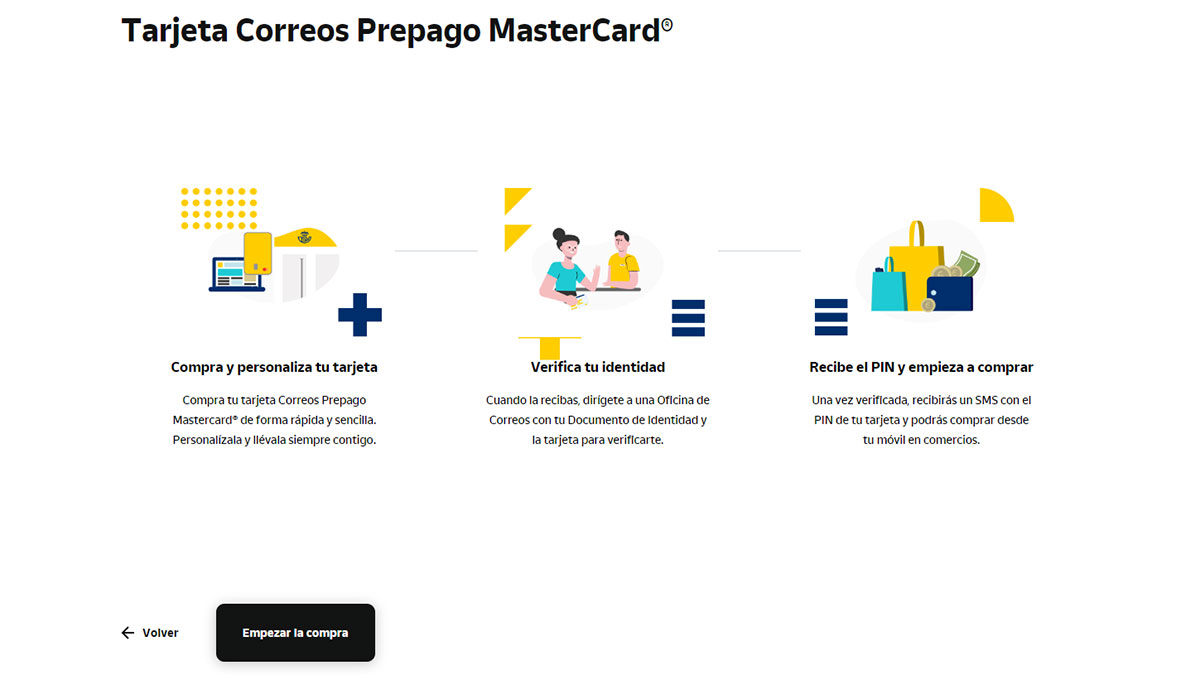 El proceso para pedir la tarjeta Prepago Correos es muy sencillo y puede hacerse por internet. Aunque también hay posibilidad de ir a una oficina de Correos y solicitar la tarjeta de manera presencial. Para empezar, tienes que acceder a este enlace y pulsar el botón que aparece en la pantalla que dice ‘Compra tu tarjeta’.