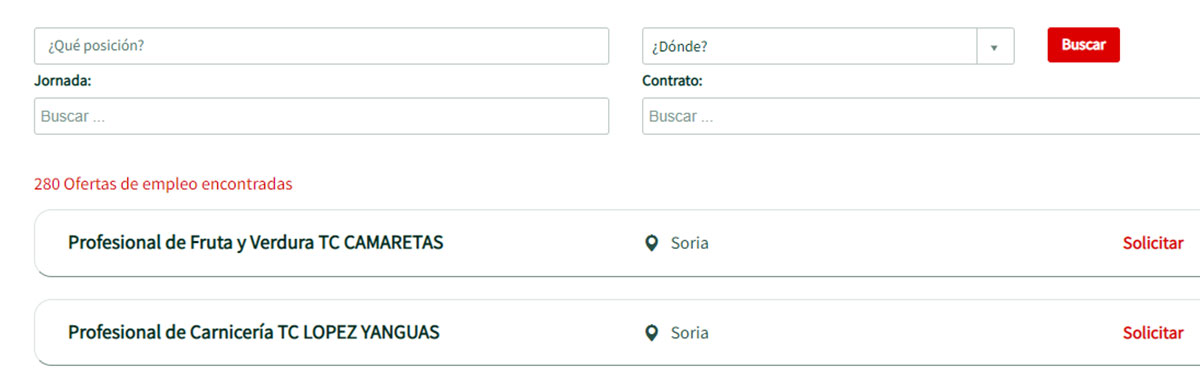 En concreto, es posible filtrar la búsqueda por puesto concreto de trabajo, por ubicación, jornada laboral o tipo de contrato.