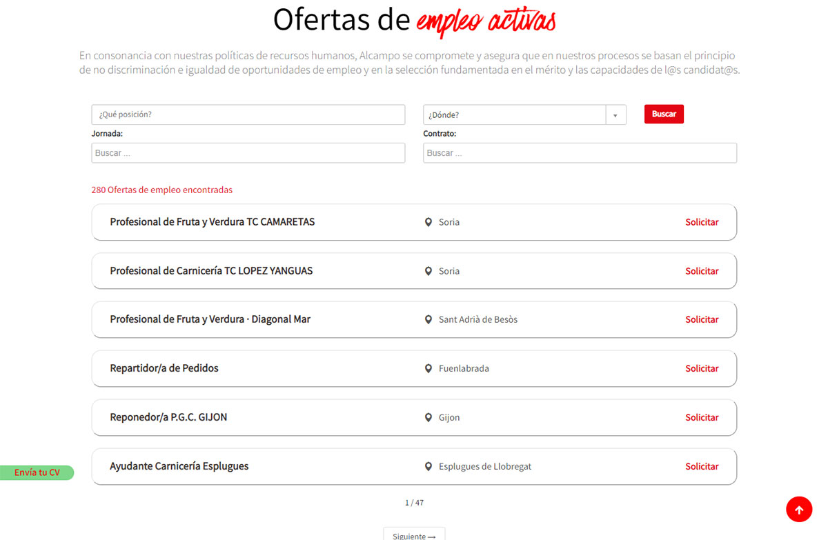 En cualquier caso, para formar parte de la plantilla de esta cadena de supermercados, hay que enviar el currículum a través de su portal de empleo. A continuación puedes consultar los pasos a seguir para enviar el CV a Alcampo e inscribirse en alguna de sus ofertas disponibles.