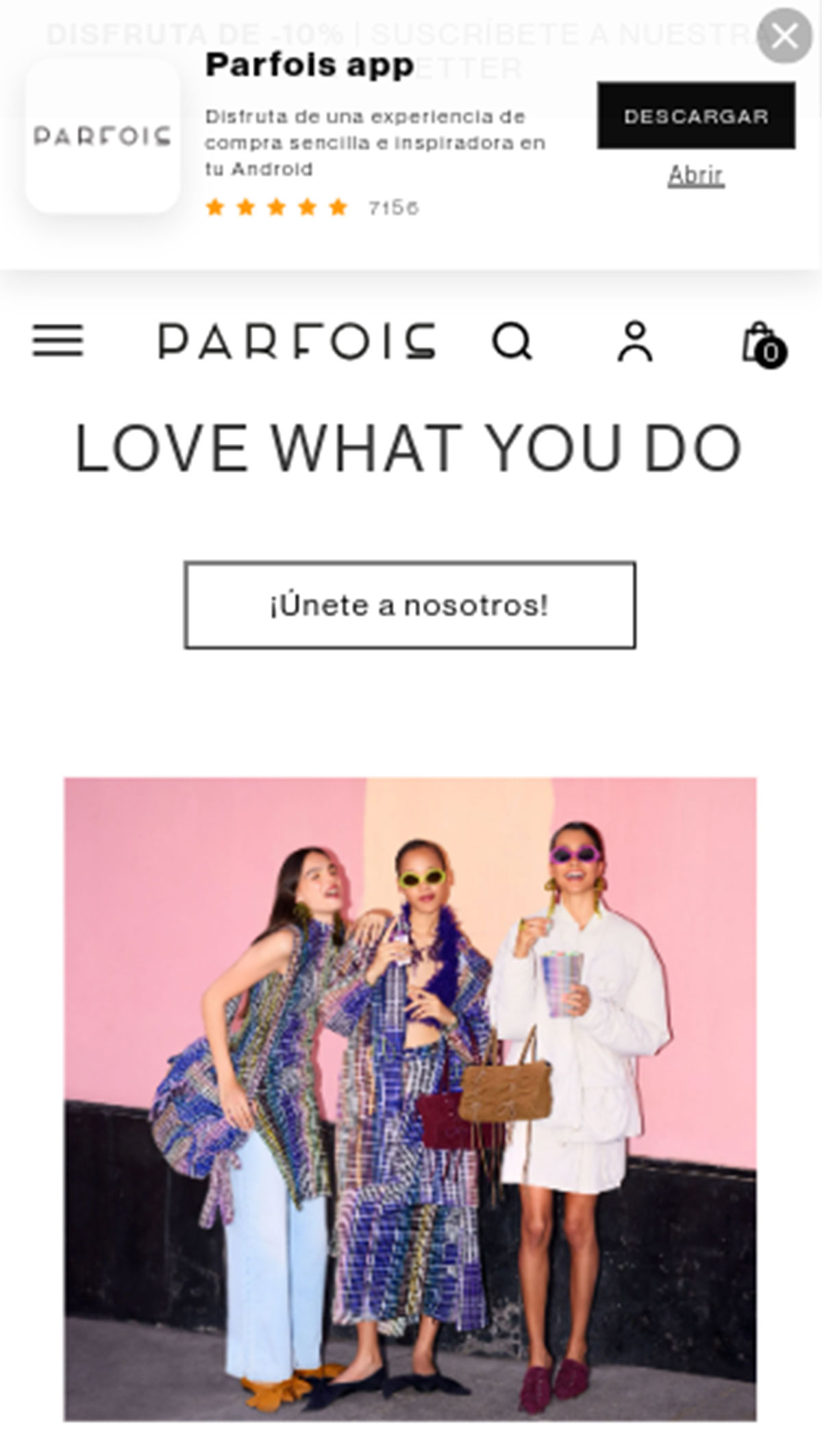 Las personas interesadas en conseguir un empleo en Parfois tienen que crearse una cuenta en el portal de trabajo de la empresa e inscribirse después en las vacantes disponibles. Se trata de un proceso íntegramente online que es muy sencillo. Lo primero que hay que hacer es entrar en la web de empleo de Parfois. Una vez en ella, pulsar en el botón que dice ‘Unete a nosotros’.