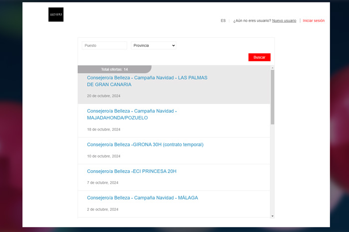 - Consejero/a de belleza para la campaña de Navidad en Las Palmas de Gran Canaria, Majadahonda y Pozuelo de Alarcón (Madrid), Barcelona, Girona, Málaga, Alicante y Valencia