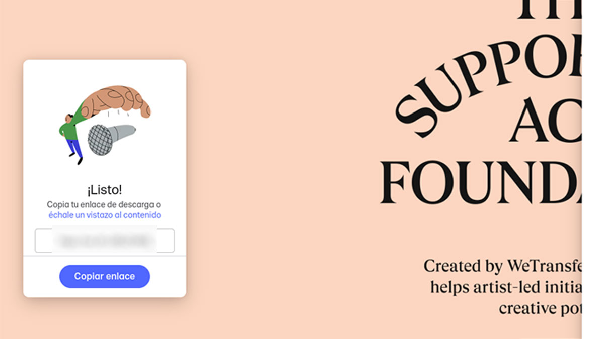 Por último, pulsa el botón de transferir y espera. Cuando se complete la barra al 100 %, los archivos ya están completamente subidos y aparece en la pantalla el enlace de descarga para compartirlo. En el caso de usar la opción por correo, este mensaje se envía de manera automática al destinatario.
