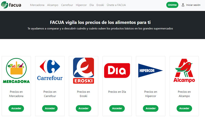 La web vigila y actualiza de forma diaria la evolución de los precios de estos productos tan esenciales en las seis mayores cadenas de supermercados de España: Mercadona, Carrefour, Eroski, Dia, Hipercor y Alcampo. Además, según aseguran desde FACUA, tienen previsto añadir nuevas categorías de productos en los próximos meses.