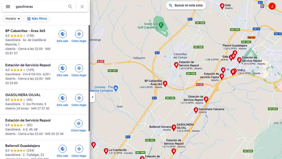 Cómo ver en Google Maps los precios de las gasolineras cercanas