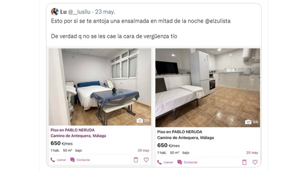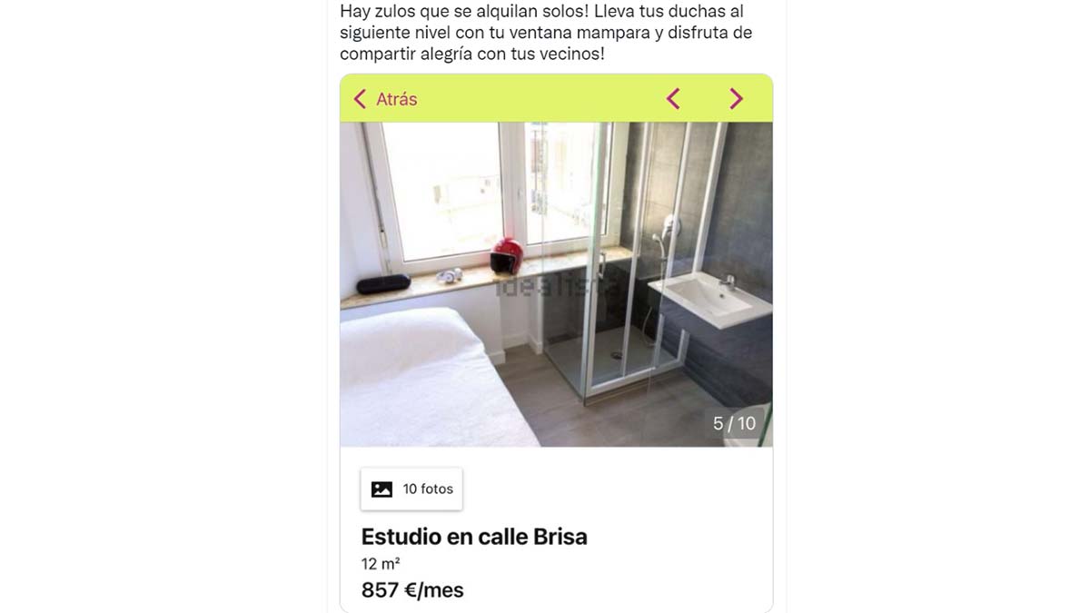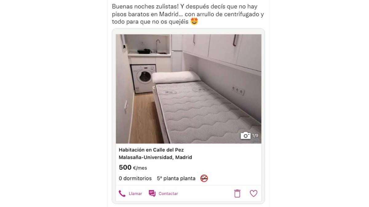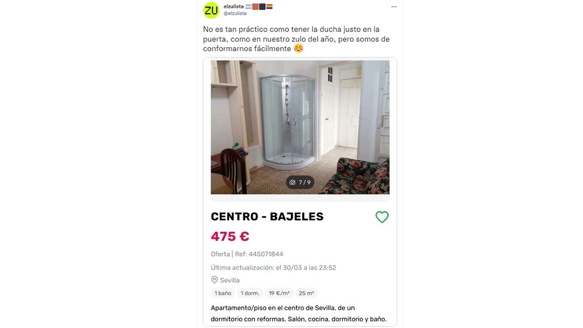 Si quieres ver más ejemplos, todas estas ofertas están recogidas por la cuenta de Twitter @ElZulista, que recopila las publicaciones de los peores pisos en alquiler que se publican en España.