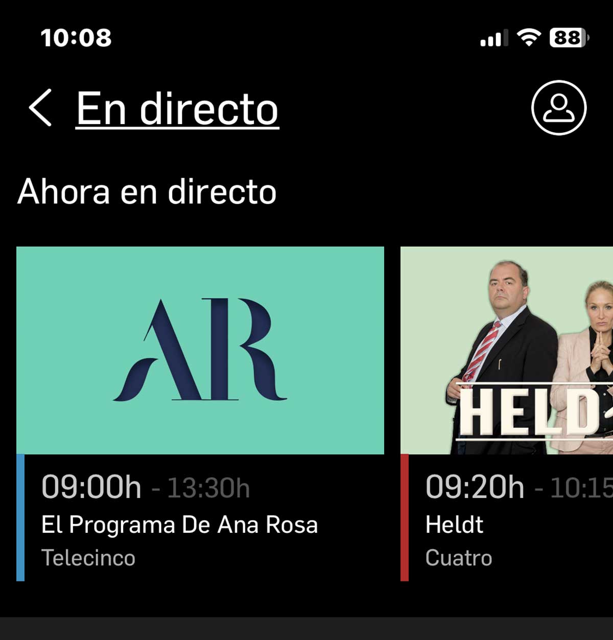 A continuación, aparecen todos los canales del grupo y las emisiones que están teniendo lugar en directo en ese momento.