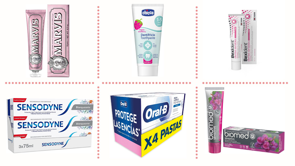 - Para niños o adultos. Hay pastas de dientes para personas con encías sensibles específicas para niños y otras para adultos, para que cada cliente pueda elegir la que mejor se ajusta a sus necesidades.