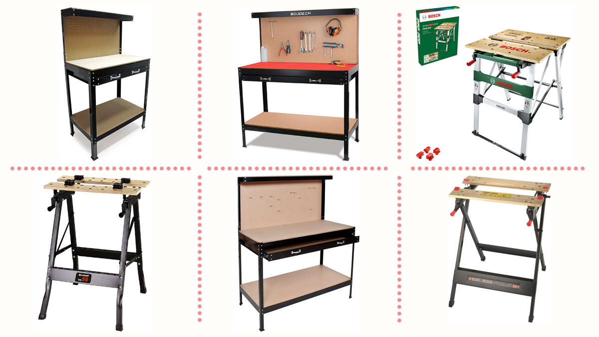 Están fabricados en materiales de calidad y resistentes, son fáciles de montar y cuentan con patas antideslizantes para poder trabajar los materiales de forma cómoda y segura. De manera adicional, algunos cuentan con zonas específicas para guardar las herramientas, como llaves inglesas, taladros y otros utensilios.