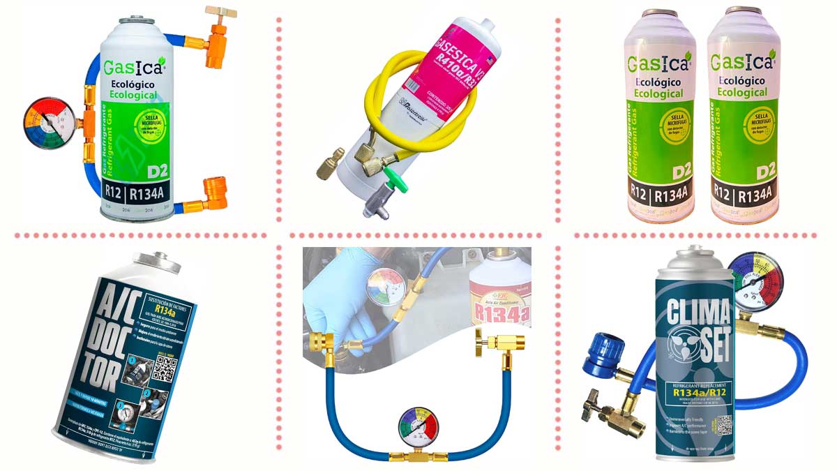 Completo. Este kit incluye refrigerante R134a, fundamental para la refrigeración, manguera con manómetro, aceite de aire acondicionado para lubricación y un sellador para evitar posibles fugas de gas.