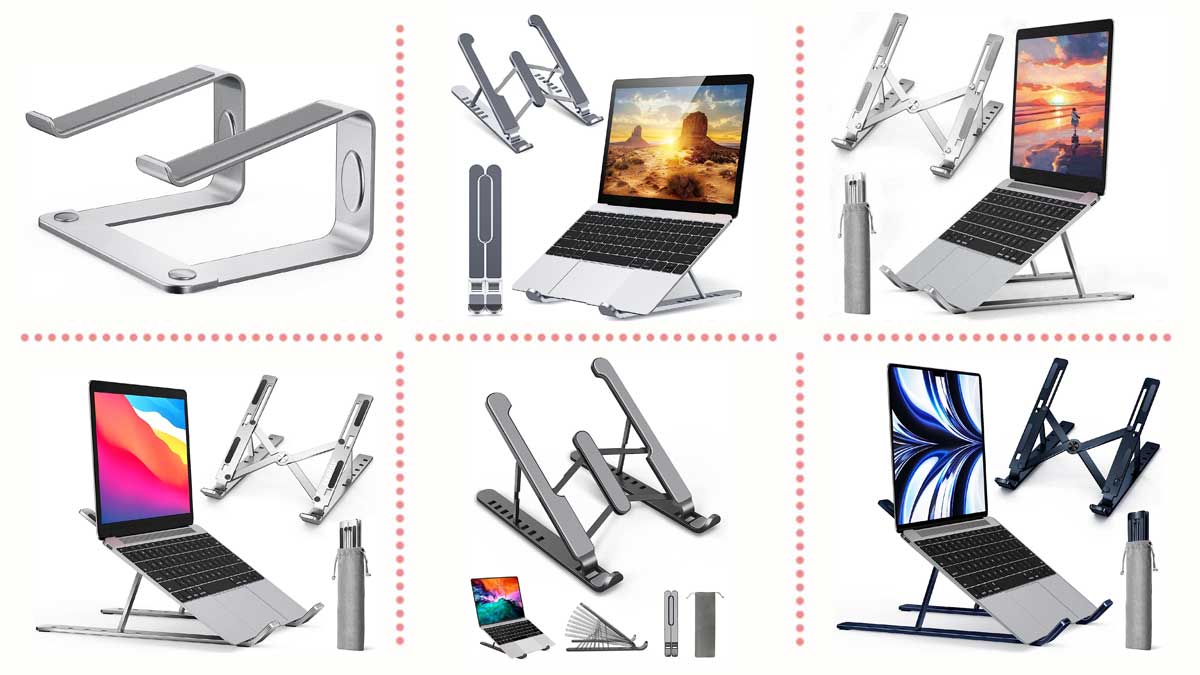Pueden nivelarse y ajustarse en diferentes alturas y también sirven para evitar que el dispositivo se caliente por pasar muchas horas en contacto directo con una superficie. Algunos incluso cuentan con un ventilador incorporado. Los hay específicos para colocar en una mesa, pero también para usar el ordenador en la cama o en el sofá.