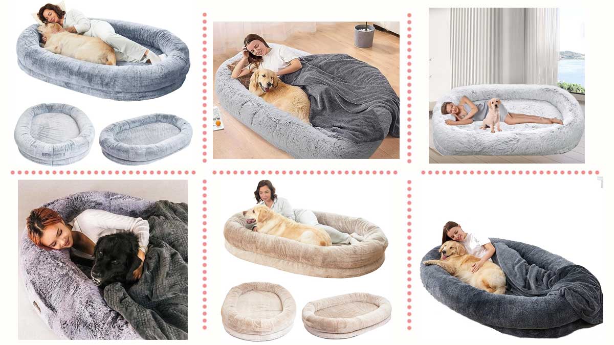 Amplia, acolchada, caliente y cómoda. En esta cama para personas y perros podrás echarte la siesta junto con tu mascota.