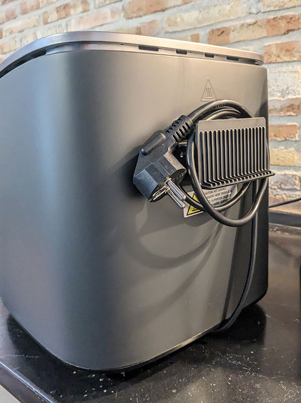 Ubicación. Al ser una freidora de 6 litros de capacidad, es necesario hacerle un hueco en casa específico para colocarla. Y, antes de usarla, asegurarte de que la parte trasera, donde se encuentra la salida de aire, no está pegada contra la pared o apuntando directamente a algún objeto que pueda recalentarse y provocar un incidente.