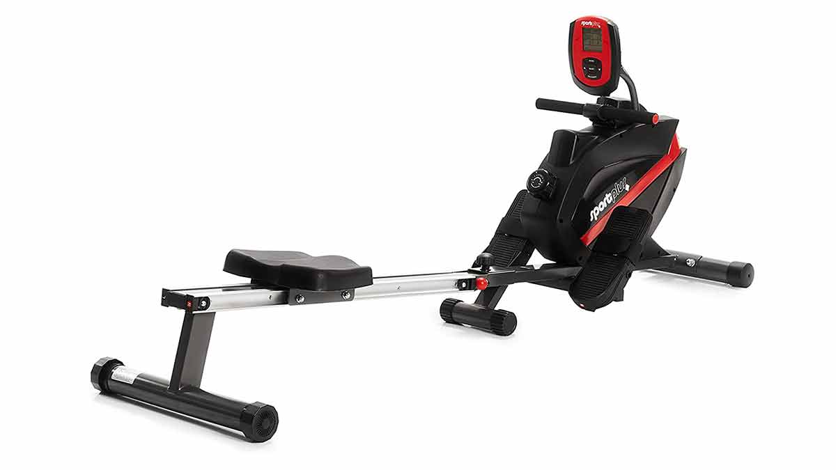 Una de las máquinas de remo con un sistema de freno magnético que tiene las mejores valoraciones en Amazon es la máquina SportPlus. Se adapta a todo tipo de niveles, puesto que la resistencia se puede ajustar hasta en ocho intensidades diferentes. Tiene incorporado un ordenador de entrenamiento, soporta un peso máximo de 150 kilos y la masa de volante es de 8 kilos.