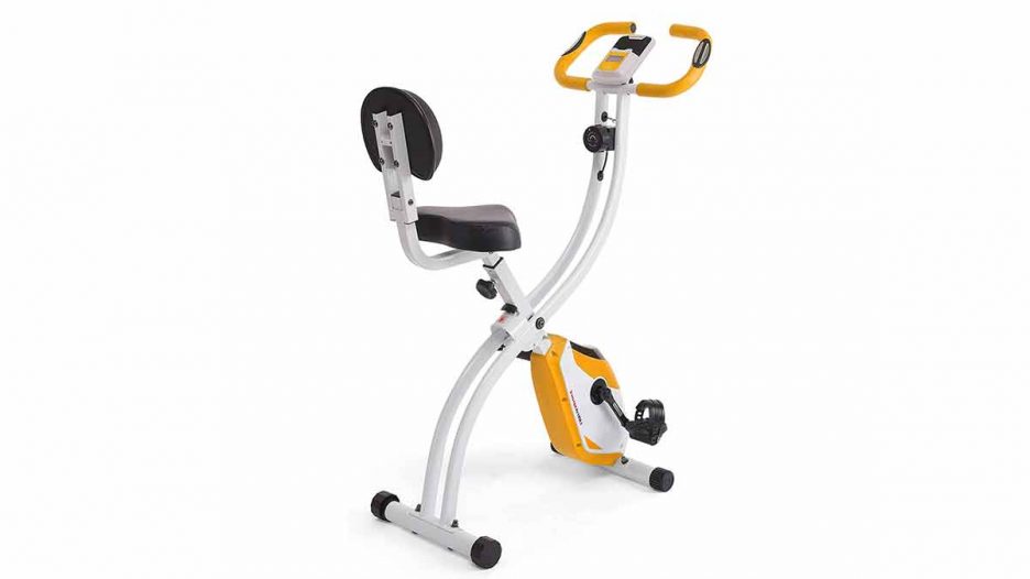 Esta bicicleta estática es perfecta para principiantes que quieran dedicar unos minutos al día a pedalear y mantenerse en forma. Es una bicicleta sencilla, que tiene un sillín con respaldo, lo que aporta una mayor comodidad durante el pedaleo y es plegable, es decir, que puedes guardarla en cualquier rincón de casa y que no te moleste cuando no la uses.