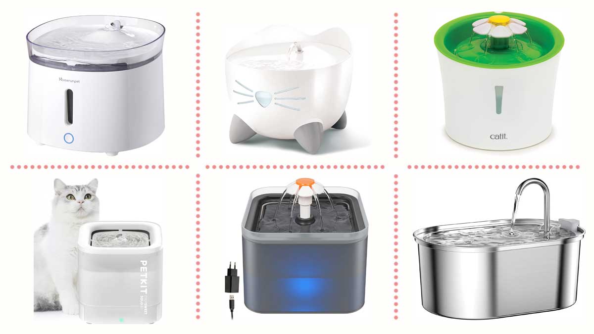 Son silenciosas, cuentan con varias capas de filtrado para evitar la acumulación de residuos o pelos en el agua, con uno o varios orificios de salida y de gran capacidad. Las fuentes para gatos son el complemento ideal para que las mascotas puedan beber agua fría en casa de una forma cómoda. Funcionan con un sistema automático que permite la circulación constante del agua para que beban de un chorro que emerge de la misma, como si fuera un grifo de agua.