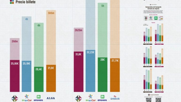 Estas son las principales conclusiones del primer ‘Análisis de tiempos y precios del transporte de viajeros por carretera’ analizado por la app ‘Compartir Tren Mesa AVE’. Para intentar valorar en igualdad de condiciones todos los trayectos y medios de transporte se han tomado referencias solo de trayectos de ida. Todos reflejan los precios más económicos y rápidos entre los distintos medios de transporte analizados.