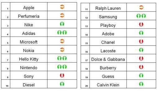 En 2009 los productos de la marca Apple, la perfumería y los cosméticos han sido las principales víctimas de la falsificación. Por otra parte, se ha percibido un considerable aumento del fraude en Adidas (+210 %), Samsung (+205 %) y Nintendo (+131 %).
