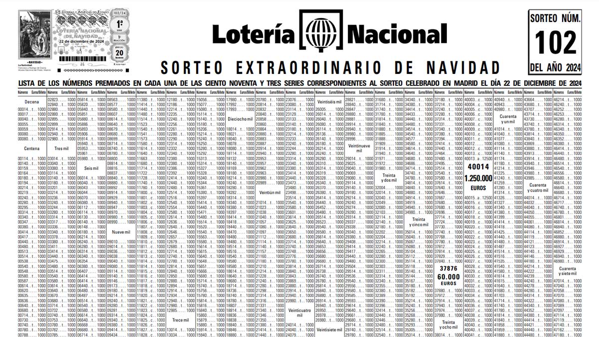 Descarga la lista oficial de la Lotería de Navidad 2024 en PDF, la tradicional ‘sábana’ con todos los números premiados del sorteo de lotería de Navidad.