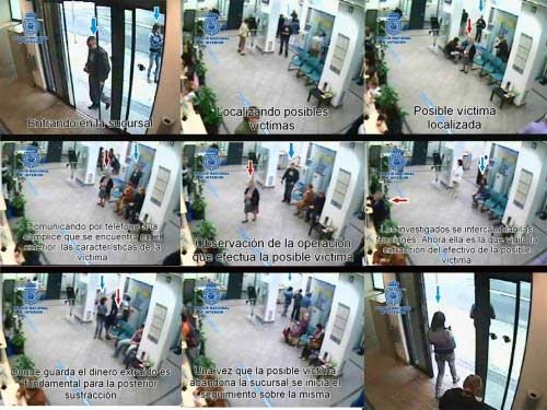 La distracción era suficiente para intercambiar la tarjeta que acababa de ser expulsada por otra idéntica previamente sustraída a otra víctima. El resto de integrantes de la organización realizaban funciones de vigilancia para evitar ser detectados por otros usuarios del banco o por la Policía.